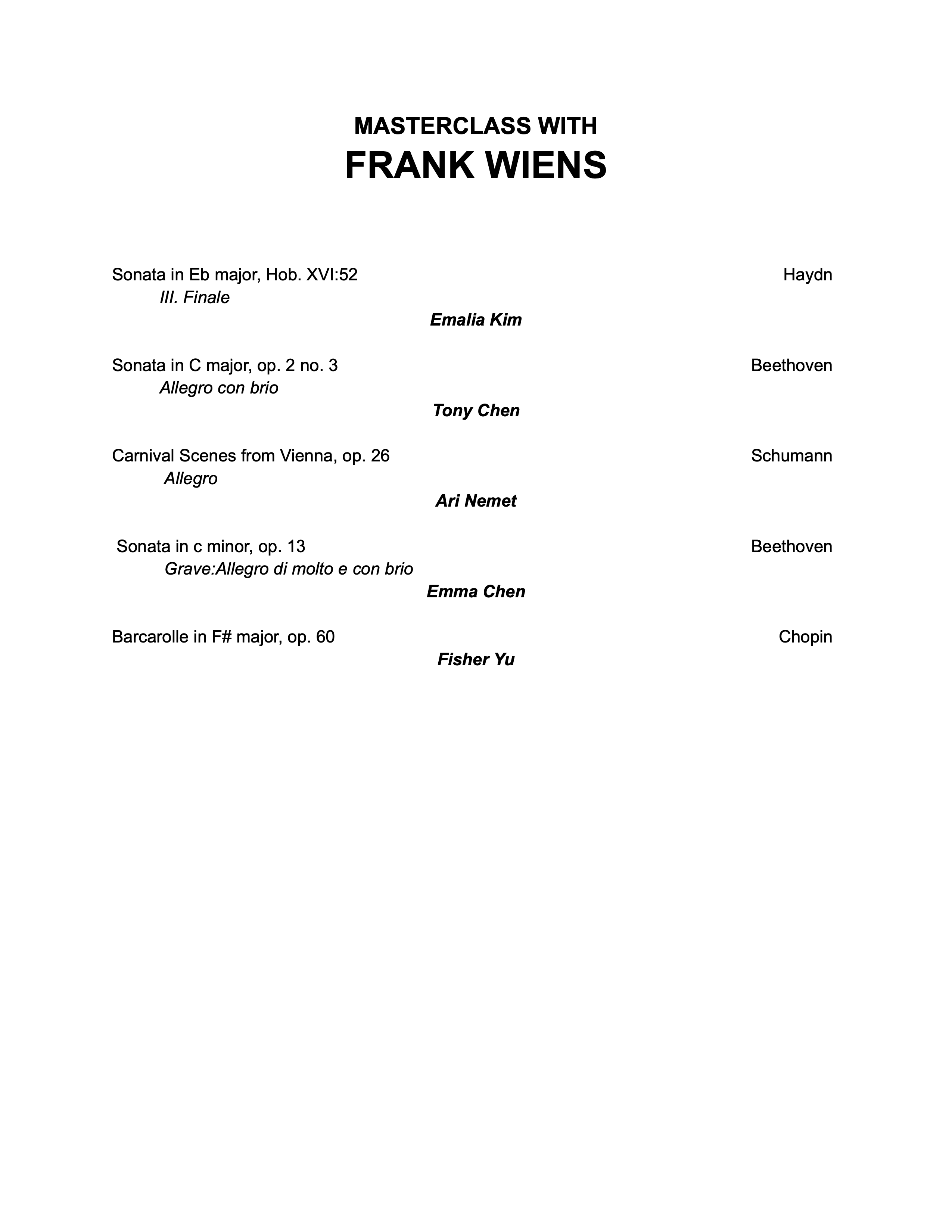 Student Piano Master Class